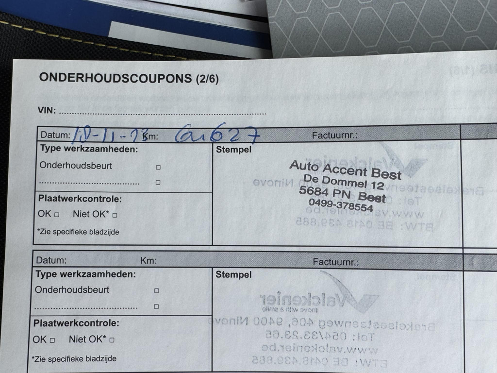 - Onderhoudsboekje (fysiek)