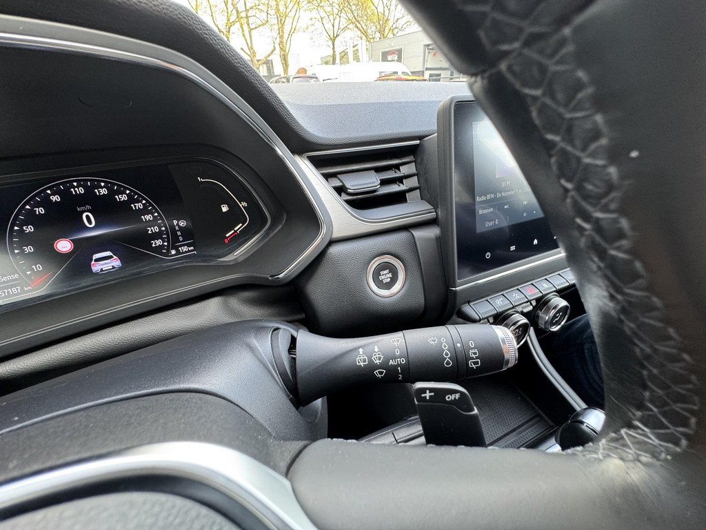 De auto is ook uitgevoerd met electronic climate control. De audiobediening op het stuur is niet alleen handig en praktisch, maar draagt ook bij aan de veiligheid onderweg. Geniet van een ruime selectie digitale radiostations met de DAB-ontvanger. Met de hulp van de parkeersensoren kost inparkeren en uitparkeren je geen enkele moeite. Het luxeniveau in deze Renault is niet alleen gericht op comfort, maar ook op jouw veiligheid. Tal van sensoren helpen je om de omgeving in de gaten te houden. De automatisch inschakelbare verlichting zorgt dat automatisch de verlichting wordt ingeschakeld als het donker wordt, wat bijvoorbeeld in tunnels erg handig is. En de regensensor zet de ruitenwissers aan zonder dat je eraan hoeft te denken. De uitrusting van deze Renault is met cruise control, keyless entry, automatisch dimmende binnenspiegel, lederen stuur, boordcomputer en lederen versnellingspook behoorlijk compleet.